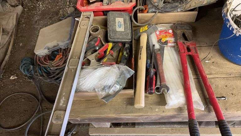 hammer, zip ties, wrench, levels, clamp, screw drivers, etc.