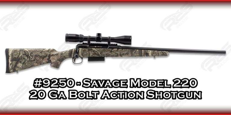 This Savage Model 220 is ready for slugging! Featuring a 22" rifled barrel with a 2-3/4" - 3" chamber, drilled & tapped receiver with a picatinny optics rail, magazine fed bolt action, manual tang safety, sling studs, and has a checkered Mossy Oak "Break-Up Infinity" Camo patterned synthetic stock. Comes with one magazine, and the preinstalled Bushnell Banner 3-9x40mm Scope.