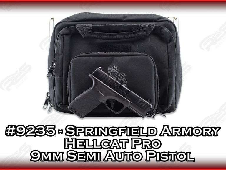 This Springfield Armory Hellcat Pro features a 3.5" barrel, black polymer frame, fixed sighting with a front night sight, removable optics plate for red dot sights, no manual safety, an under barrel rail for accessories, and has a textured grip. This complete set comes with (1) 15rd magazine, both of it's retail boxes, Springfield branded soft case & range case, a composite molded holster made by Alien Gear, and manual.