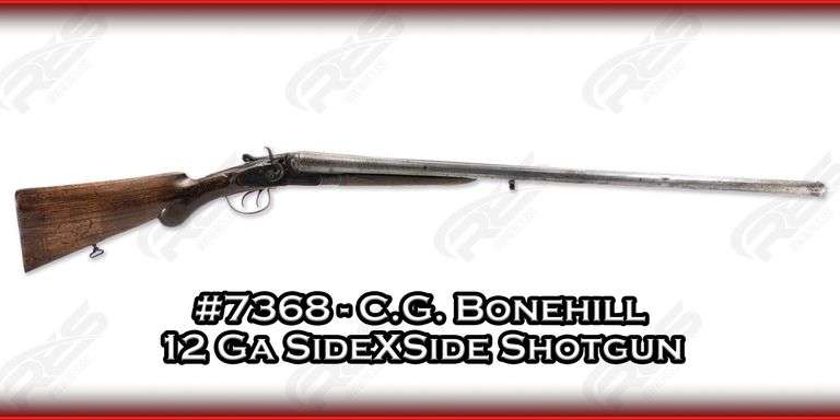 This late 1800's side by side was manufactured by C.G. Bonehill of Birmingham, England. Featuring a 30" barrel, single bead sighting, sling studs, and a lightly checkered walnut stock and forearm.